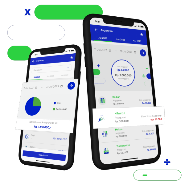 Kemudahan Unduh Laporan Keuangan (Laporan: Transaksi, Kas & Bank, Kartu Kredit & Pinjaman Lainnya, Pemasukan & Pengeluaran, Anggaran, dan Pajak).